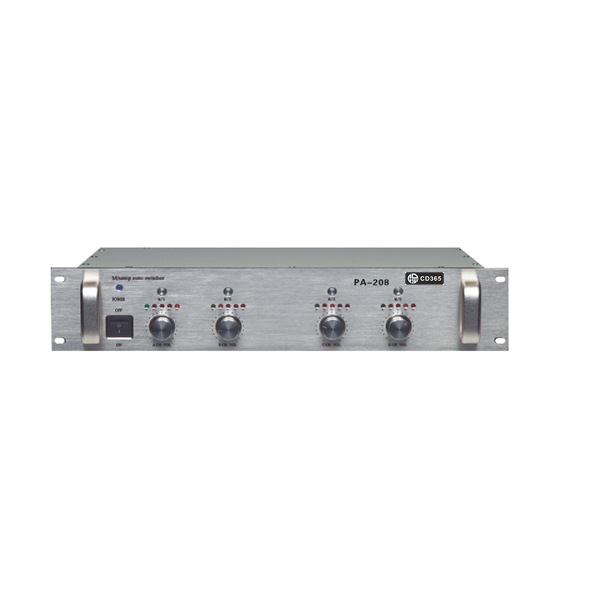 可满足广播系统不间断进行和无人值守,具有手动/自动控制功能,可与功率放大器组成7备1-1备1系统。在系统进行中,不断检测功放,一旦发现功率故障,自动接入备用功放,并发出报警声,同时显示故障功放编号。